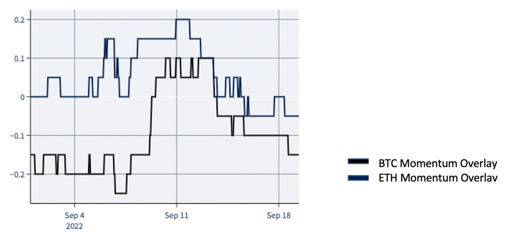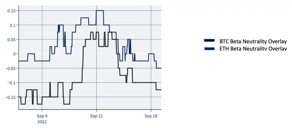 Interestingly, our measures for a beta neutral portfolio, that also incorporates Altcoins, ended up in almost the same weightings as our Momentum Overlay.