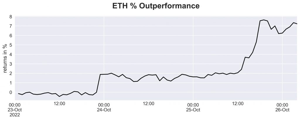 The outperformance of ETH vs. BTC was significant, and it is worth noting that picking up such behavioural patterns can have great benefits for the overall portfolio, as this kind of alpha is market-independent.